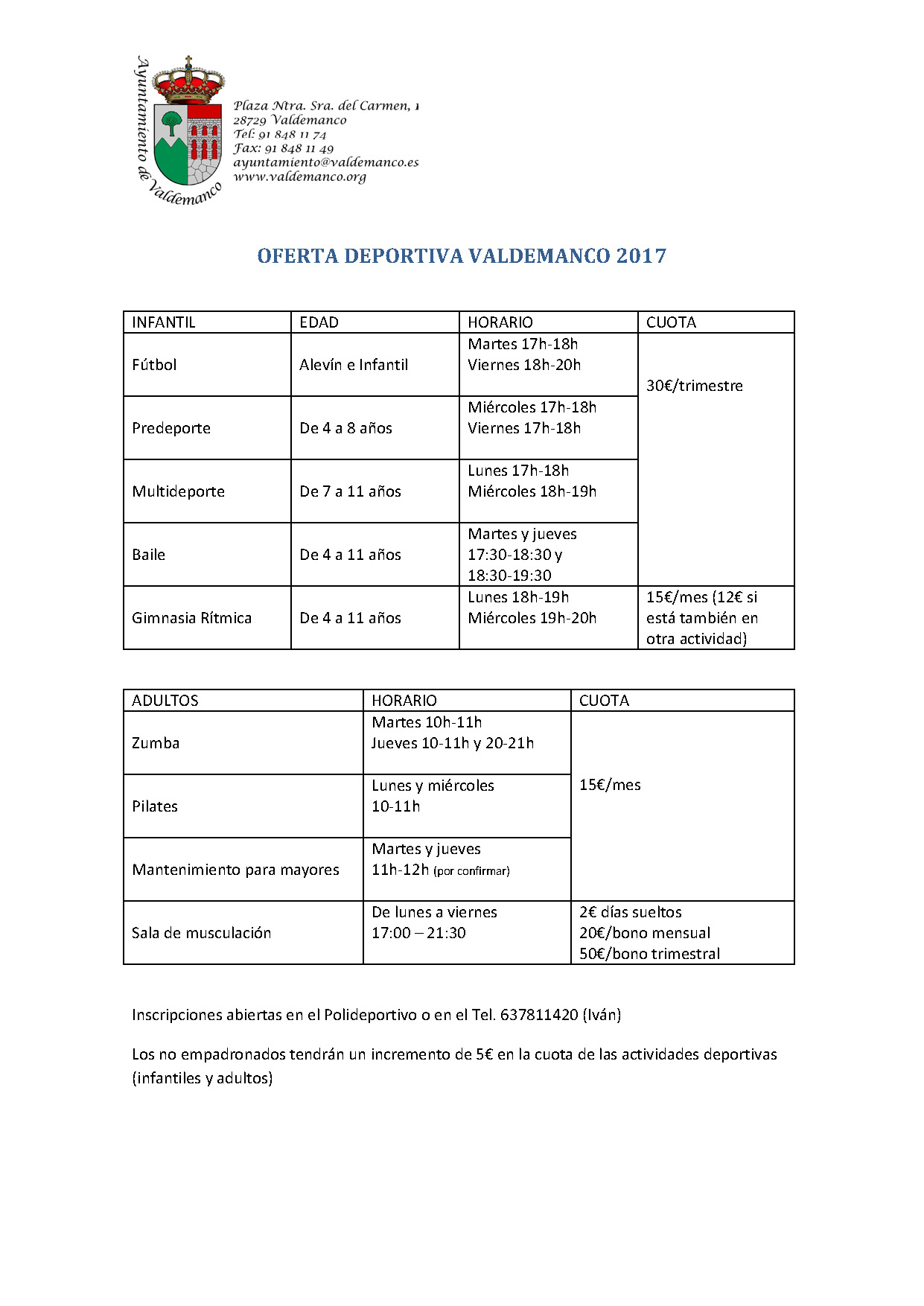 OFERTA DEPORTIVA VALDEMANCO 2017